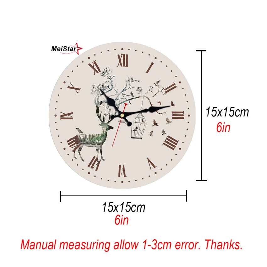 Yeyo 12 Inch Silent Wooden Wall Clock Pretty Bird Picture Home Decoration French Country MDF Wooden Clock Painted Retro Style for Home Living Room ...