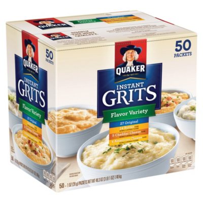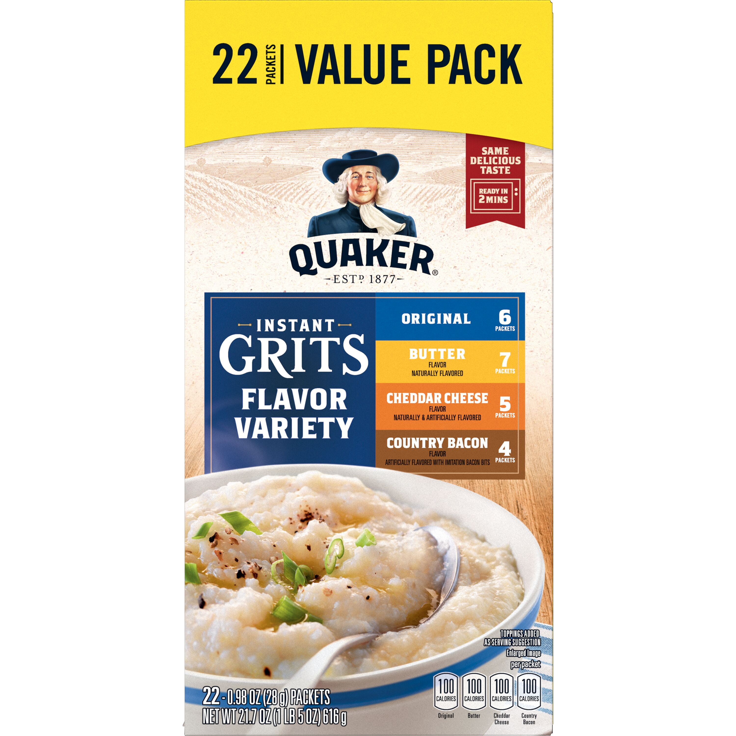 Quaker Flavor Instant Grits Variety Pack - H-E-B 12 oz. $3.21 ($0.27/oz) Product description. If you love grits in all their glory, Quaker delivers Original, Butter, Cheddar Cheese and Country Bacon flavors. Get 'em while they're hot. Pick your passion for breakfast or any meal of the day. Go for it. You're a minute away from instant grits gratification. Preparation instructions.