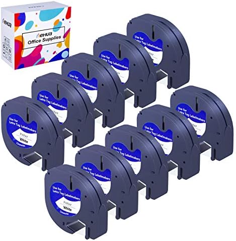 12mm Compatible Dymo PLASTIC Label Tapes for Dymo LetraTag Label Printer LT-2000, LT-100H, LT-100H Plus, LT-100T, LT-100T Plus, LT-110T, LT-QX50, ...