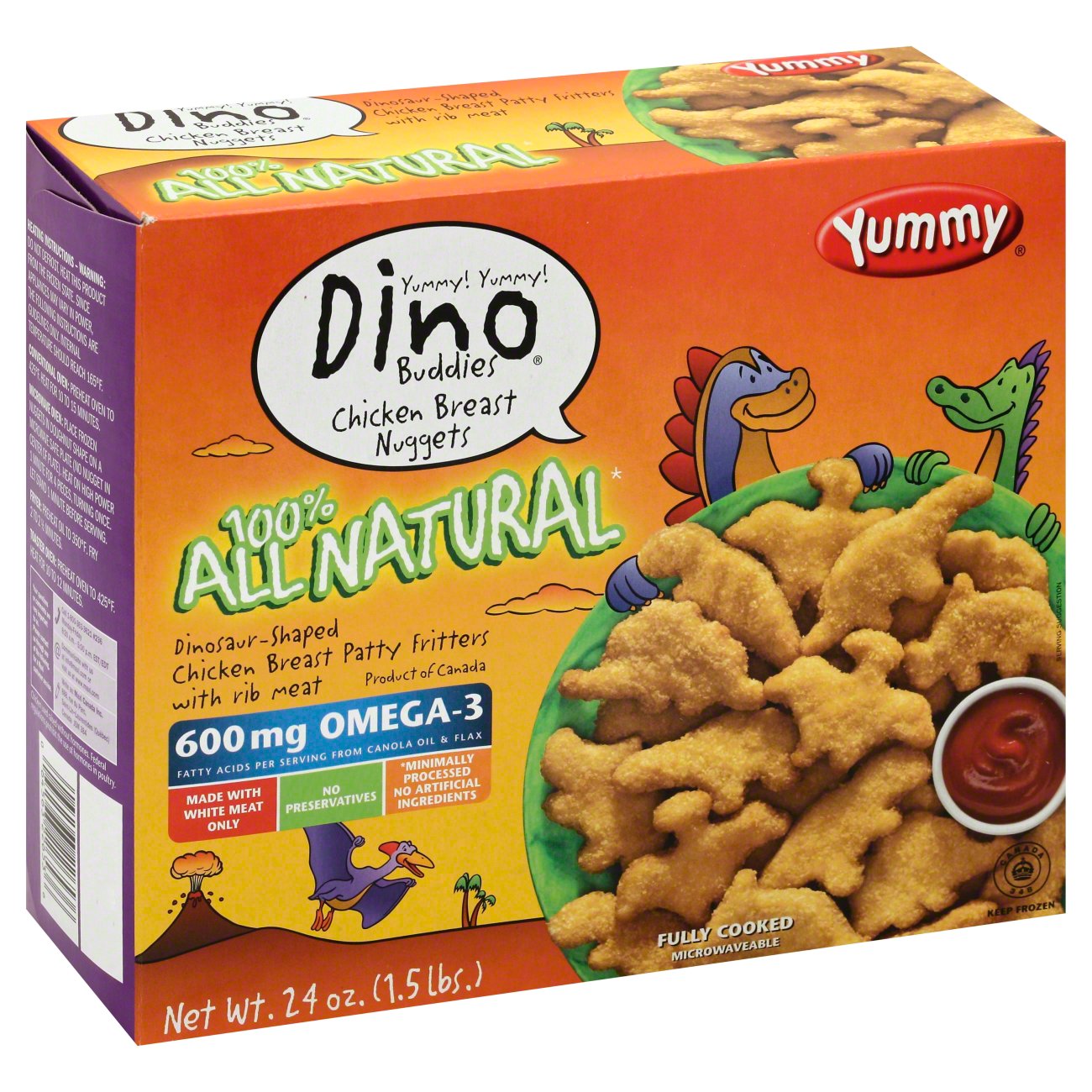 Yummy Dino Buddies Dinosaur-Shaped Chicken Breast Nuggets, 5 lbs Yummy Dino Buddies Dinosaur-Shaped Chicken Breast Nuggets, 5 lbs 660 mg omega-3 9 g protein per serving Product of Canada Item 1560758. Yummy Dino Buddies Dinosaur-Shaped Chicken Breast Nuggets, 5 lbs. Item 1560758. Share Share Print Product Details; Specifications; Shipping & Returns ...