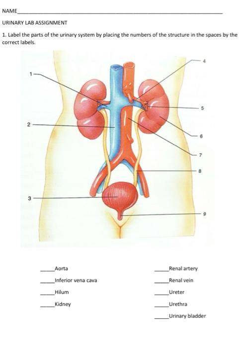 The Female urinary tract with labels - Media Asset - NIDDK Black and white illustration of the female urinary tract with labels for the kidneys, ureters, urine, bladder muscle, urethra, pelvic floor muscles, ... Urinary System Label - The Biology Corner May 3, 2020 · Major structures included in the labeling are the kidney, bladder, urethra, ureter, and major vessels like the aorta, vena cava, and renal. I made this worksheet after I realized my students were struggling with labeling a black and white version, particularly with identifying the aorta and vena cava. Label the Urinary System - Anatomy Corner Label the Urinary System. June 7, 2017 Anatomy, Quiz. Answers: A= Renal Vein B= Right Kidney C= Inferior Vena Cava D = Urinary Bladder E= Renal Artery. Urinary System - Cleveland Clinic The urinary system includes the kidneys, ureters, bladder and urethra. This system filters your blood, removing waste and excess water. This waste becomes urine. The most common urinary issues are bladder infections and urinary tract infections (UTIs). Urology 216.444.5600 216.444.6771 Function Anatomy Conditions and Disorders Care