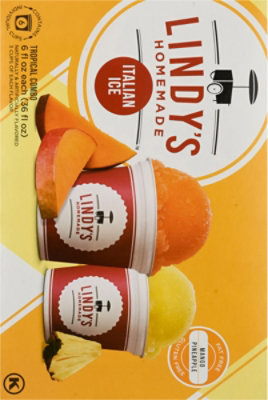 Lindy's Homemade Italian Ice Lemon Fat Free - 6 ct - Stop & Shop Water, High Fructose Corn Syrup, Corn Syrup, Sugar, Natural Lemon Flavor, Citric Acid, Dextrose, Guar Gum, Xanthan Gum, Carrageenan. Warnings. Manufactured on ... Find Lindys Homemade Italian Ice Calories & Nutrition Facts Cherry Italian Ice. Lindys Homemade Italian Ice Cherry, 6 oz. Calories: 100. Carbs: 27g · 100 ; Strawberry Water Ice. Lindys Italian Ice, 1 cup. Calories: 100. Calories in Lindy's Premium Italian Ice, Strawberry & Watermelon How many calories inLindy's Premium Italian Ice, Strawberry & Watermelon ; Fat, 0 g ; Carbs, 26 g ; Fiber, 0 g ; Protein, 0 g ; Swimming. 8 minutes.